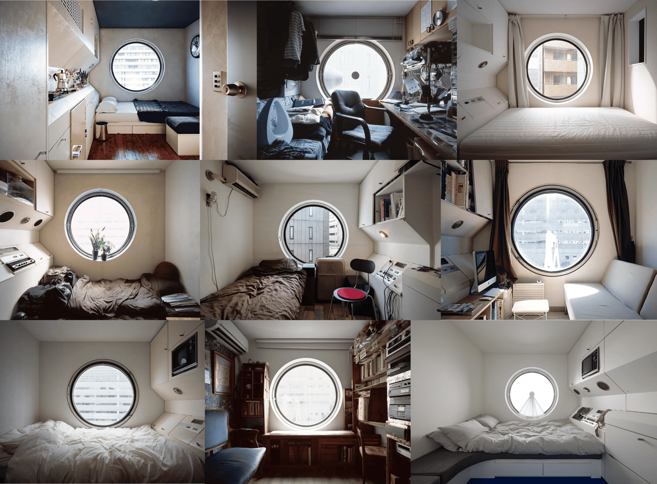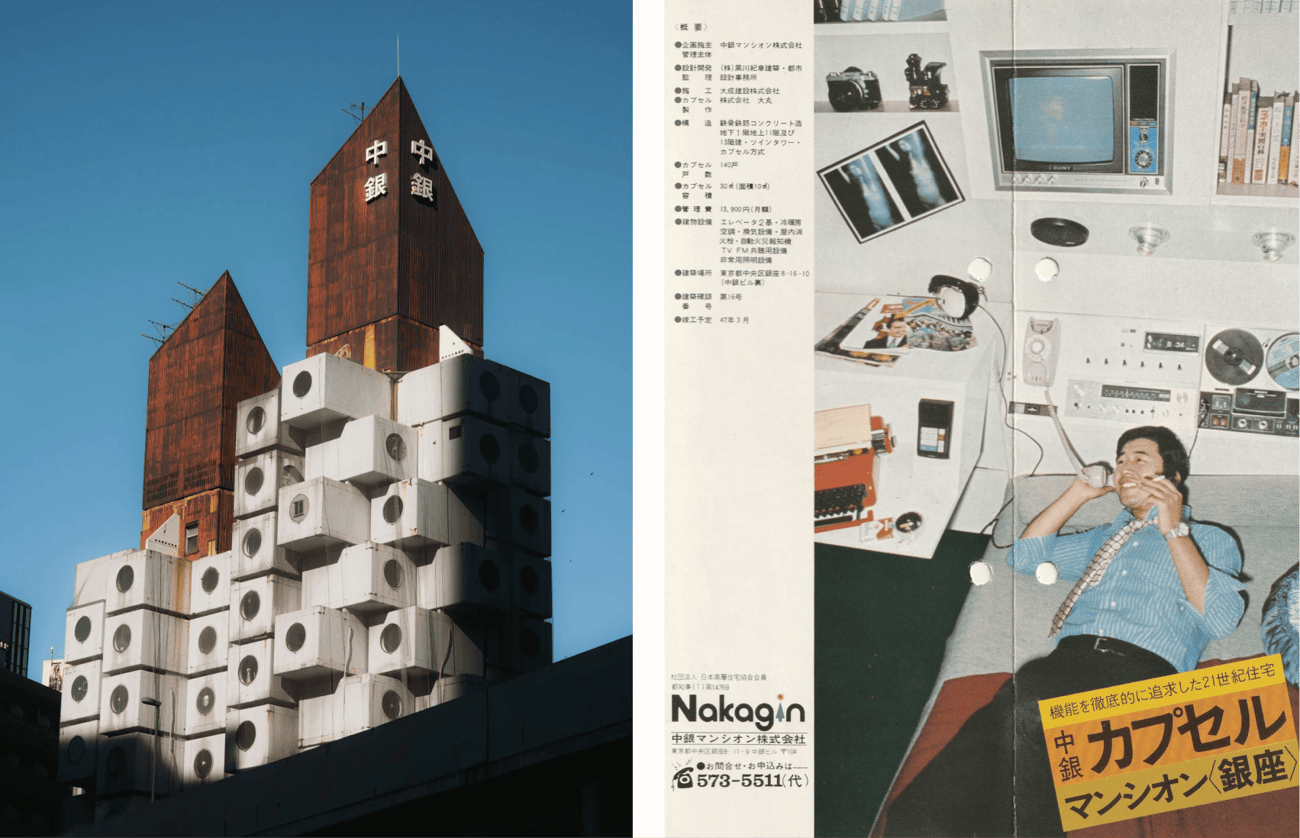 En 1972, Kisho Kurokawa construyó la Nakagin Capsule Tower, un manifiesto de independencia en pleno Ginza: 140 cápsulas de diez metros cuadrados, suspendidas en el aire, células autónomas diseñadas para hombres de negocios que perdían el último tren a casa. Cada unidad podría “desenchufarse” y reemplazarse sin alterar al resto. Cada habitante viviría su vida autónoma suspendida en el aire, historias fragmentadas, realidades paralelas que nunca se tocan. |